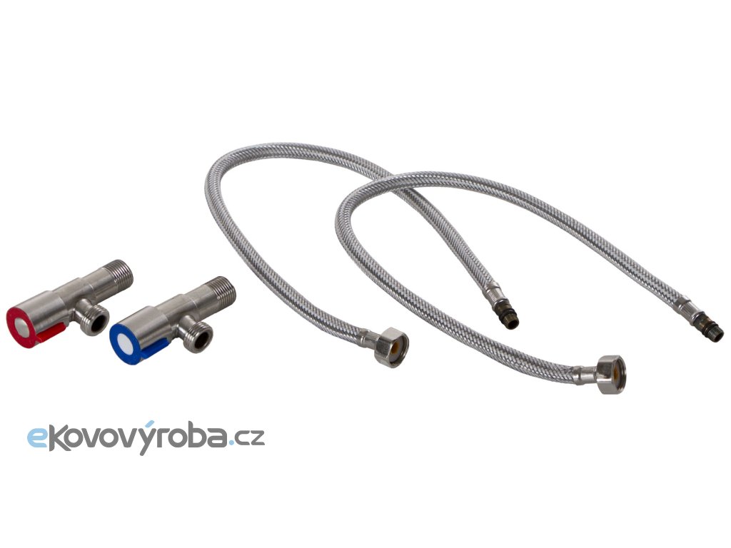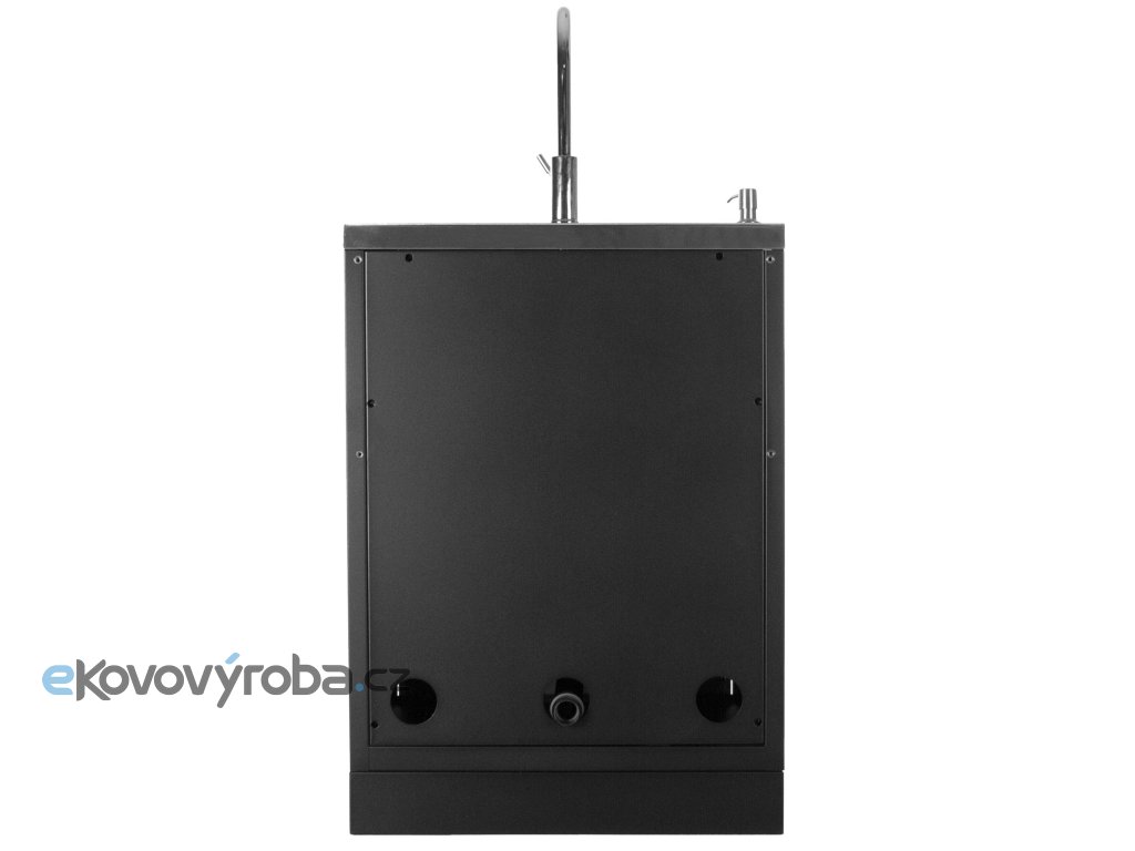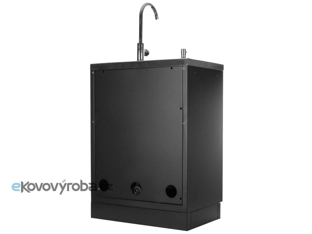 Kompletně vybavená skříňka s baterií, kterou lze umístit do jednoho z rohů nebo doprostřed nerezového dřezu.