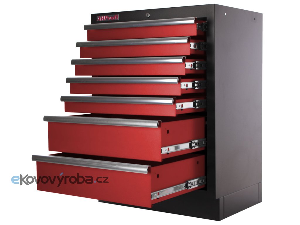 Celokovová PROFI dílenská skříňka s 7-mi zásuvkami je vhodná do profesionálních servisů, dílen, ale také do garáží pro uskladnění širokého sortimentu zboží i ručního nářadí, na které se pak nepráší a snáze se udrží přehledně uklizené na správném místě.