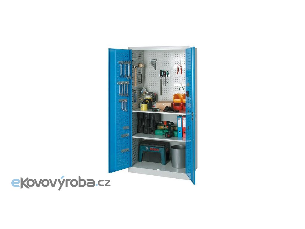 Vyrobeno z ocelového plechu. Součástí perfo výbavy nejsou držáky ani nářadí. Police jsou přestavitelné po 25 mm. Vybaveno cylindrickým rozvorným zámkem. Povrchová úprava provedena kvalitní práškovou barvou.