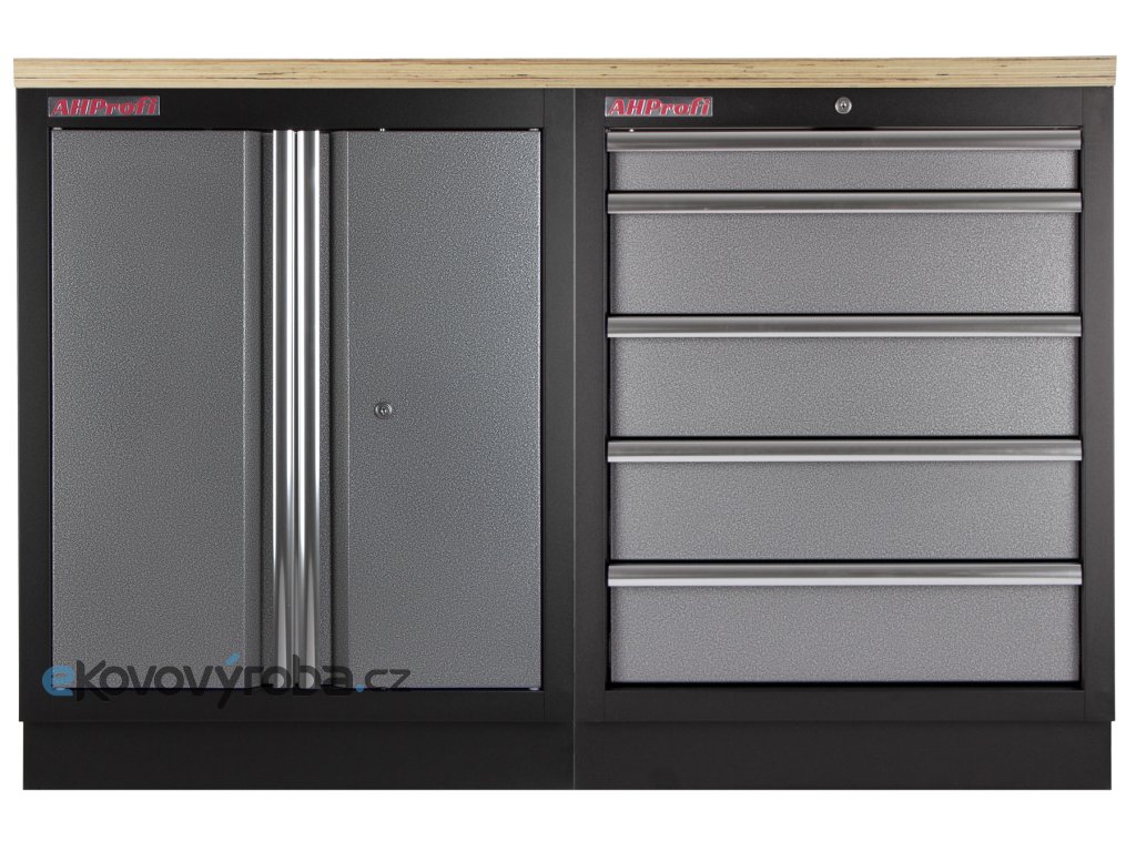 Dílenský nábytek PROFI GREY s dřevěnou deskou zaujme moderním a profesionálním vzhledem. Kombinace kladívkové šedé a černé RAL 9004 se bude vyjímat v každé garáži i dílně.