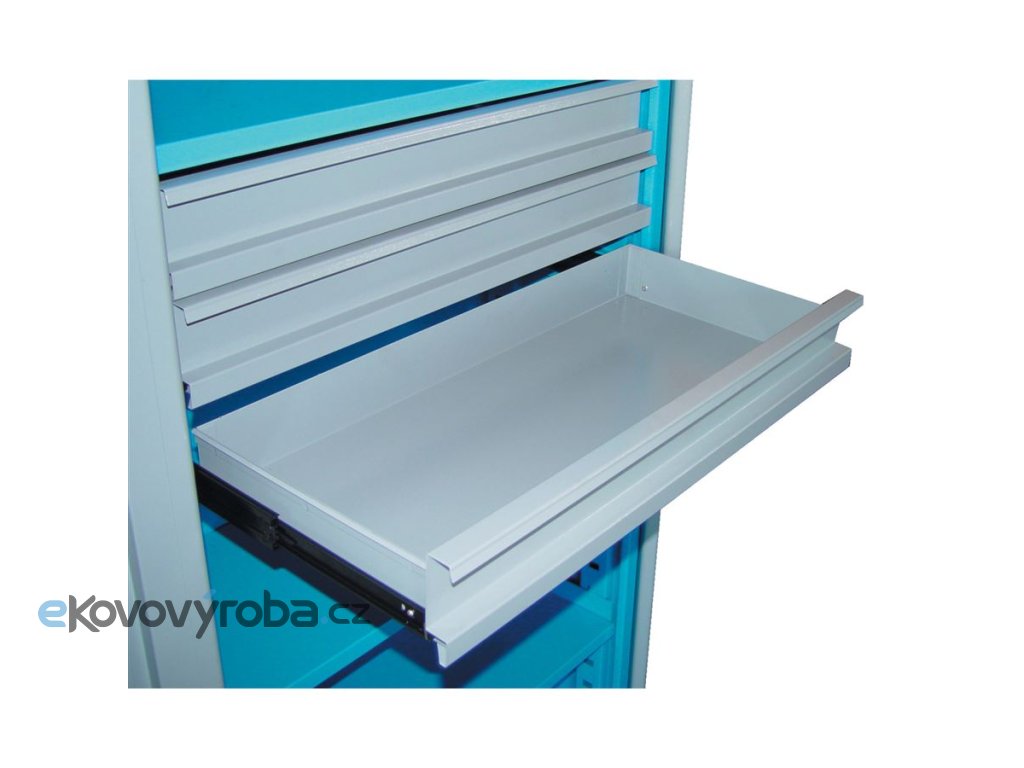 Vybavení: dvoudveřová skříň (-> uzamykání cylindrickým/rozvorovým zámkem - dvojité uzamčení, 2 klíče); čtyři vyjímatelné police (-> volitelné nastavení výšky, nosnost: 50 kg); 3 zásuvky s úplným rozsahem vyložení (-> profesionální vodicí lišty, kuličková ložiska); děrovaný vrchní panel zadní stěny skříně (-> rozměry š x v: 780 x 340 mm).