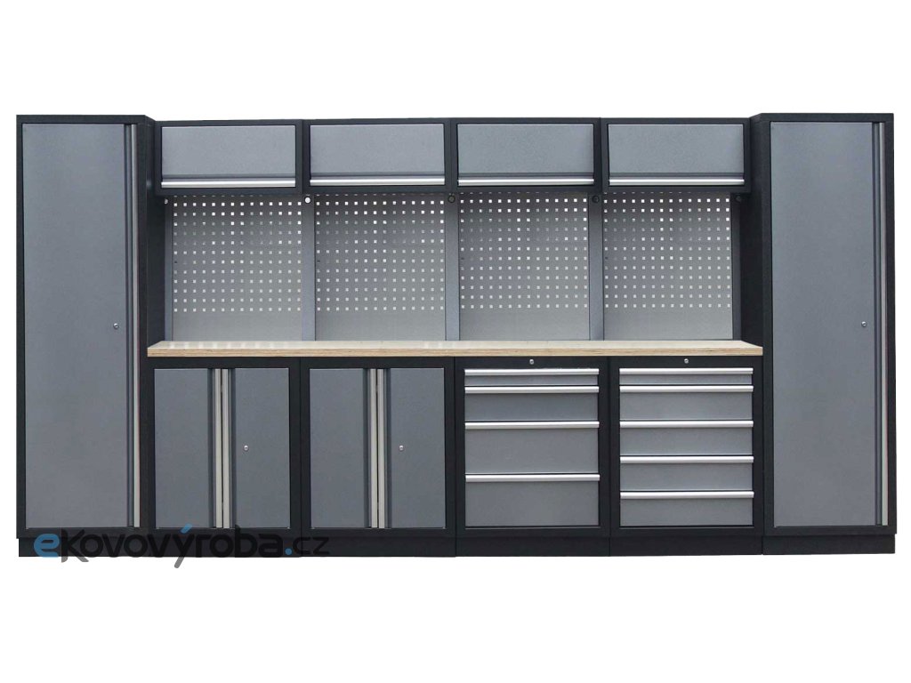 Sestava nábytku v sobě skrývá dostatečné množství úložného prostoru pro vaše nářadí, autotechniku i dílenské vybavení. V kombinaci s bytelnou pracovní deskou získáte multifunkční stěnu, se kterou vám půjde práce od ruky ve všech směrech.