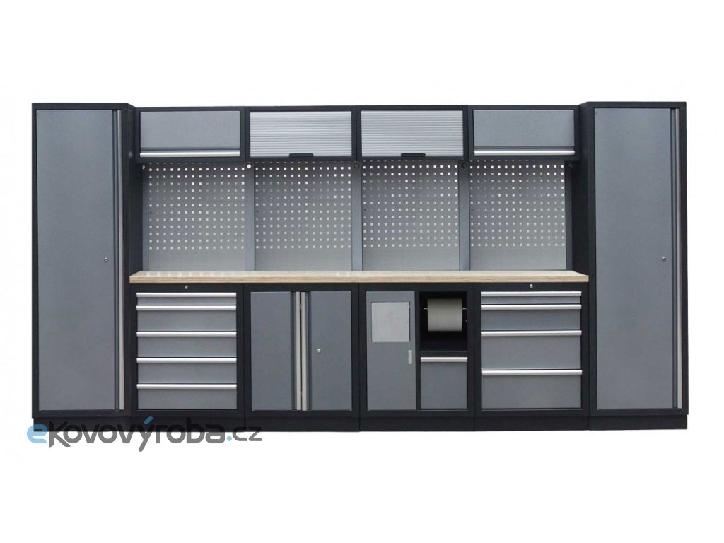 Sestava nábytku v sobě skrývá dostatečné množství úložného prostoru pro vaše nářadí, autotechniku i dílenské vybavení. V kombinaci s bytelnou pracovní deskou získáte multifunkční stěnu, se kterou vám půjde práce od ruky ve všech směrech.
