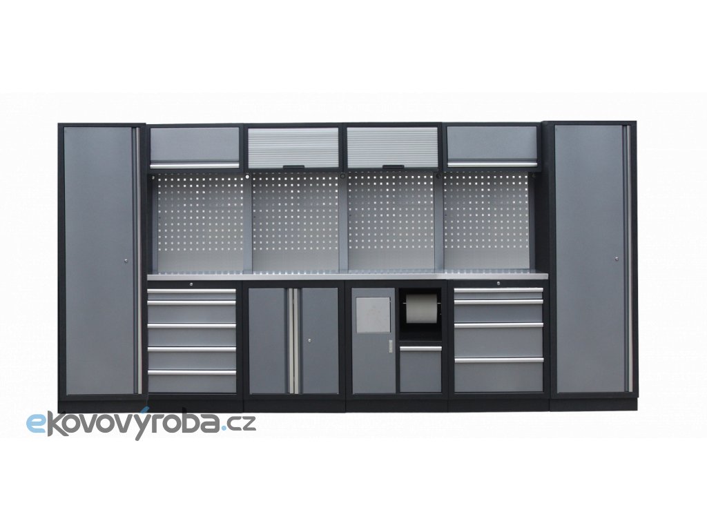Jednotlivé komponenty jsou plně konfigurovatelné, sestavu je možné dle vašich potřeb rozšířit o další skříně, regály i ponk.