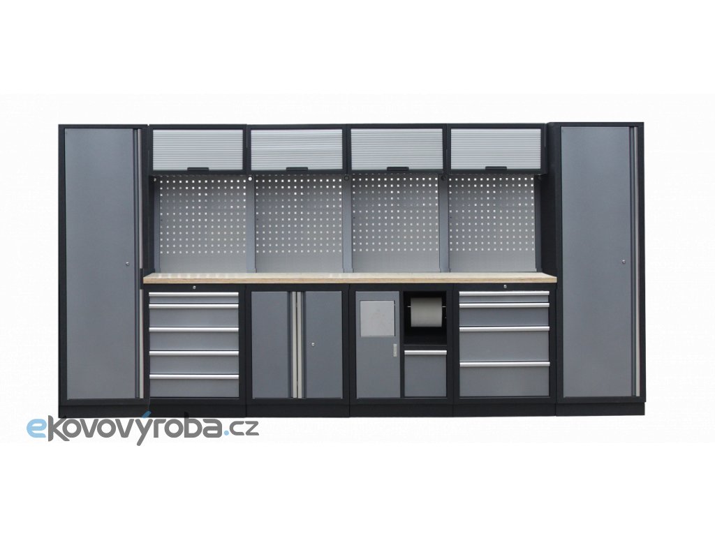 Sestava nábytku v sobě skrývá dostatečné množství úložného prostoru pro vaše nářadí, autotechniku i dílenské vybavení. V kombinaci s bytelnou pracovní deskou získáte multifunkční stěnu, se kterou vám půjde práce od ruky ve všech směrech.