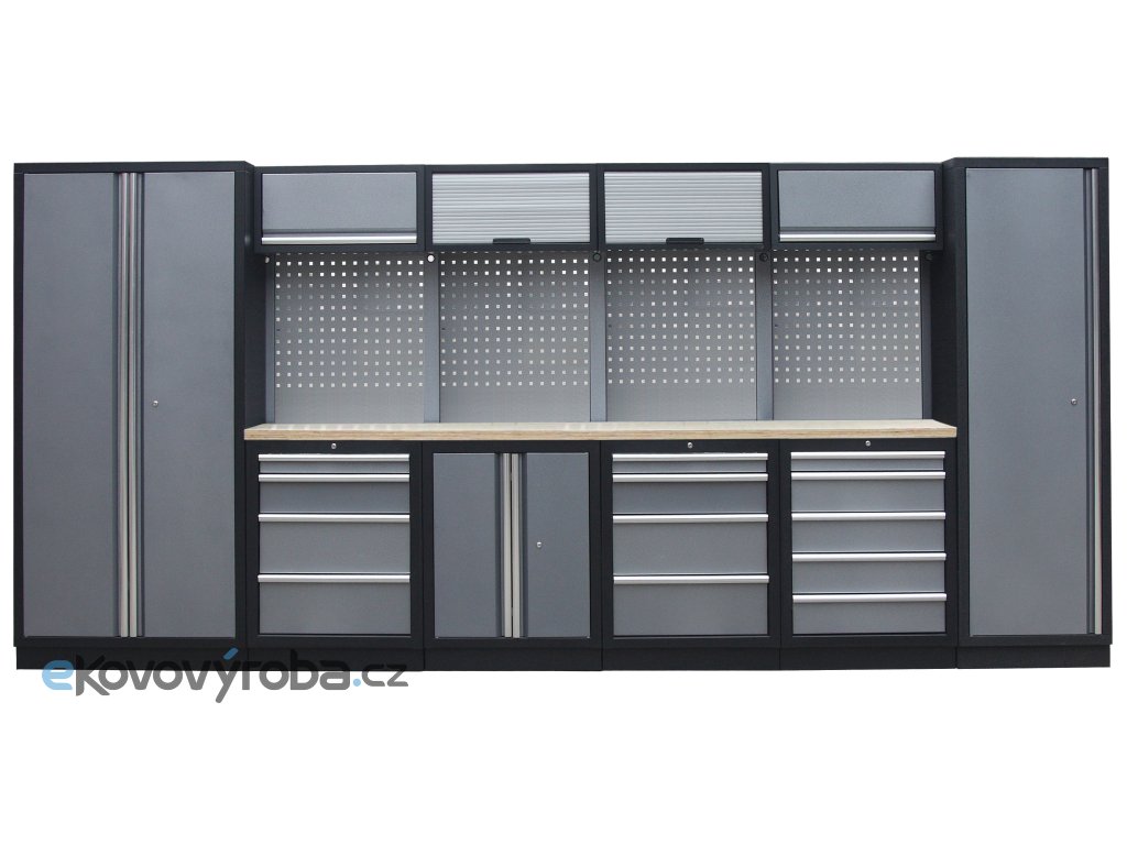 Sestava nábytku v sobě skrývá dostatečné množství úložného prostoru pro vaše nářadí, autotechniku i dílenské vybavení. V kombinaci s bytelnou pracovní deskou získáte multifunkční stěnu, se kterou vám půjde práce od ruky ve všech směrech.