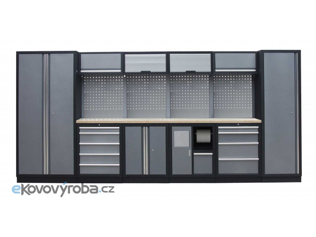 Jednotlivé komponenty jsou plně konfigurovatelné, sestavu je možné dle vašich potřeb rozšířit o další skříně, regály i ponk.