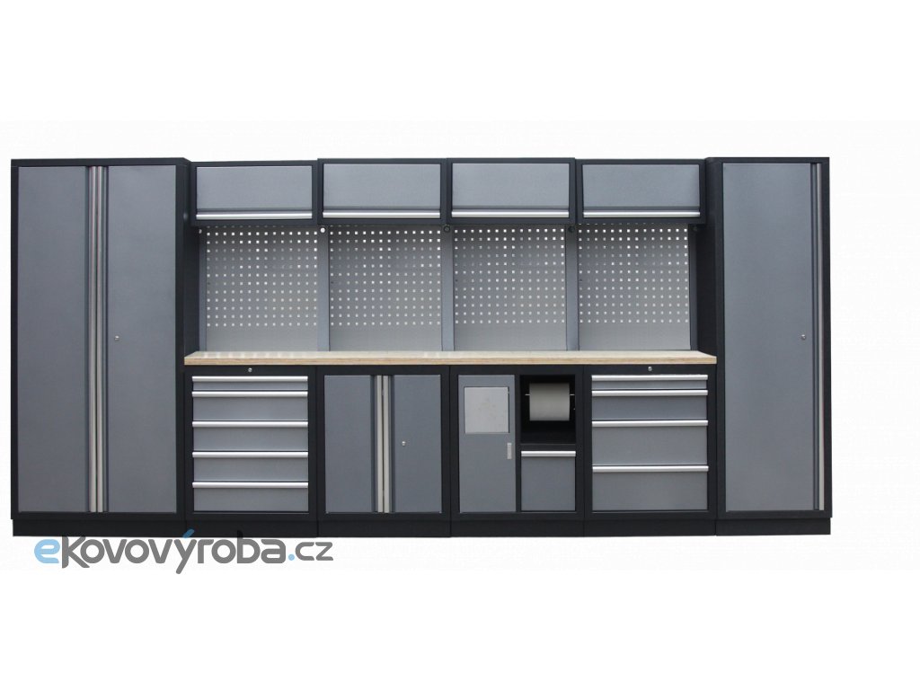 Sestava nábytku v sobě skrývá dostatečné množství úložného prostoru pro vaše nářadí, autotechniku i dílenské vybavení. V kombinaci s bytelnou pracovní deskou získáte multifunkční stěnu, se kterou vám půjde práce od ruky ve všech směrech.