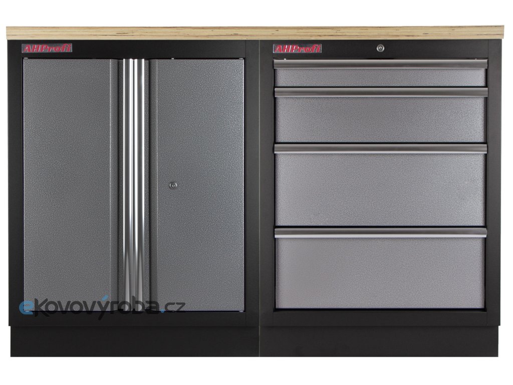 Sestava dílenského nábytku ve vysoké kvalitě, který je vhodný pro profesionální servisy i domácí garáže a dílny. Nábytek je celokovový s dřevěnou pracovní deskou. Sestava 3 ks dílenského nábytku udrží nářadí přehledně uklizené na správném místě.