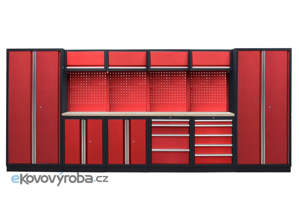 Sestava dílenského nábytku ve vysoké kvalitě, který je vhodný pro profesionální servisy i domácí garáže a dílny. Nábytek je celokovový s dřevěnou pracovní deskou. Sestava 21 ks dílenského nábytku udrží nářadí přehledně uklizené na správném místě.