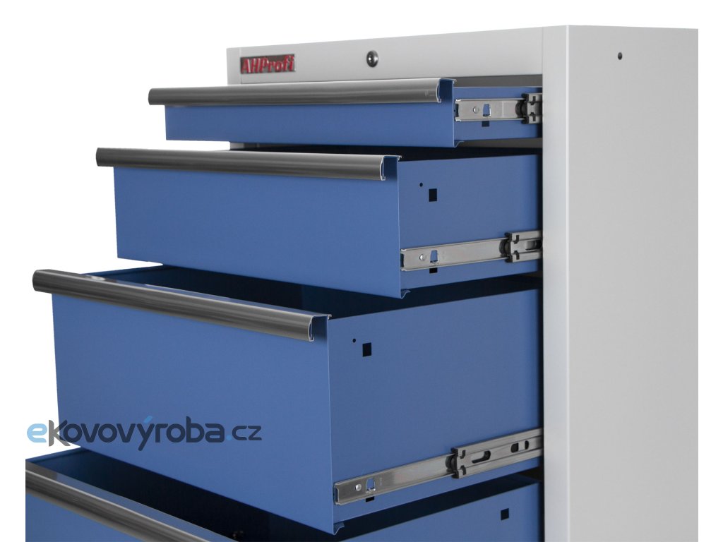 Nízké skříňky vyplňují prostor pod pracovní deskou. Do zásuvek můžeme vložit výplně s nářadím, nebo prázdné, do kterých si vložíte své nářadí. Také nabízíme organizéry na šroubky, které se skvěle hodí na pracovní desku. Výsuvy zásuvek jsou osazeny kuličkovými ložisky.