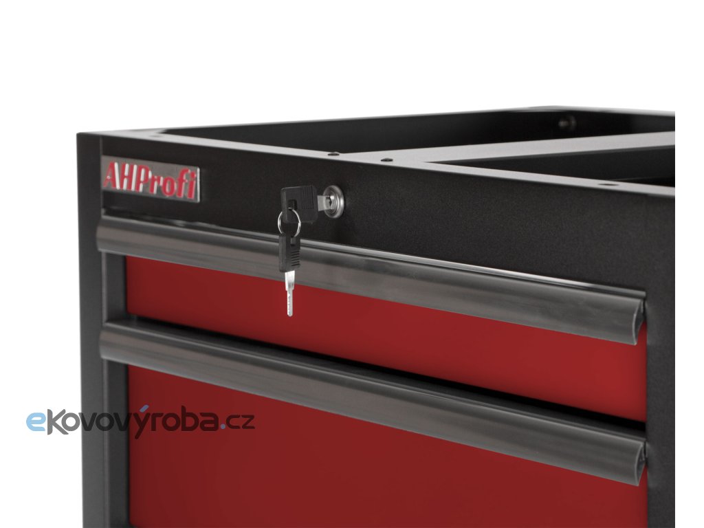Nízké skříňky vyplňují prostor pod pracovní deskou. Do zásuvek můžeme vložit výplně s nářadím, nebo prázdné, do kterých si vložíte své nářadí. Také nabízíme organizéry na šroubky, které se skvěle hodí na pracovní desku. Výsuvy zásuvek jsou osazeny kuličkovými ložisky.