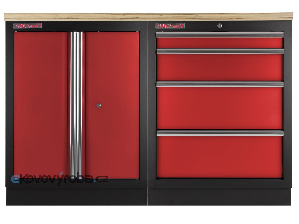 Sestava dílenského nábytku ve vysoké kvalitě, který je vhodný pro profesionální servisy i domácí garáže a dílny. Nábytek je celokovový s dřevěnou pracovní deskou. Sestava 3 ks dílenského nábytku udrží nářadí přehledně uklizené na správném místě.