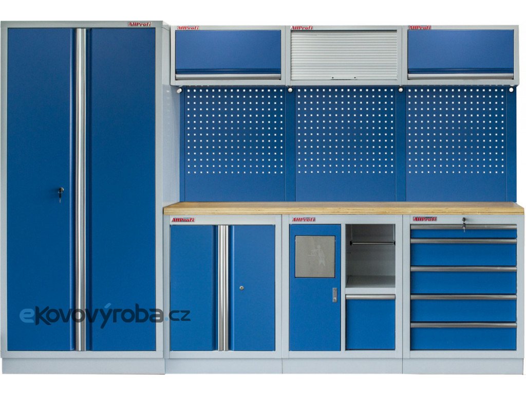Dílenský nábytek PROFI BLUE s dřevěnou deskou zaujme moderním a profesionálním vzhledem. Kombinace modré RAL 5023 a šedé RAL 7035 barvy se bude vyjímat v každé garáži i dílně.