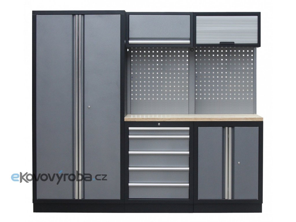 Sestava nábytku v sobě skrývá dostatečné množství úložného prostoru pro vaše nářadí, autotechniku i dílenské vybavení. V kombinaci s bytelnou pracovní deskou získáte multifunkční stěnu, se kterou vám půjde práce od ruky ve všech směrech.