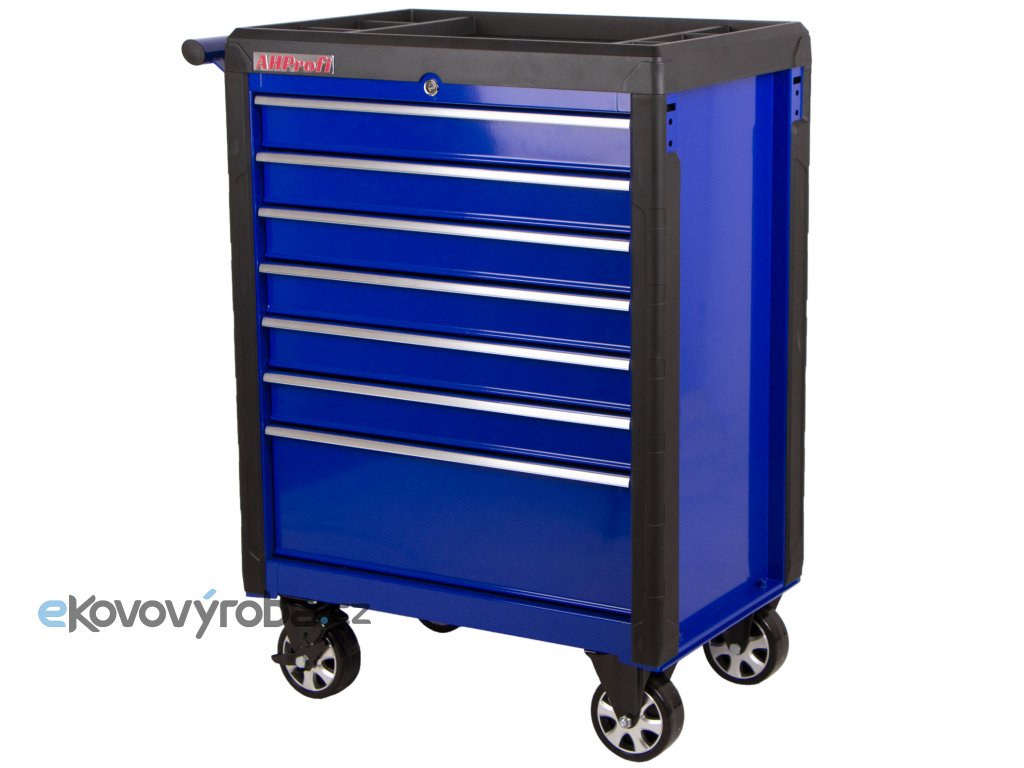 Dílenský vozík je celokovový se sedmi šuplíky.