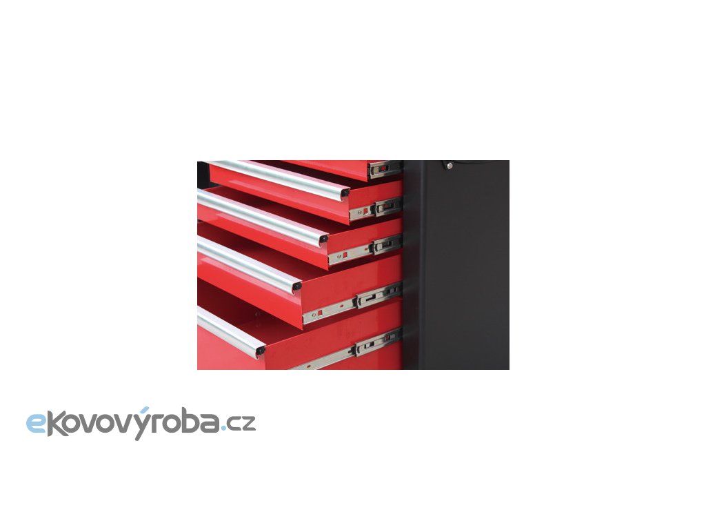 Vozík obsahuje 10 zásuvek s kvalitní kuličkovými pojezdy.
