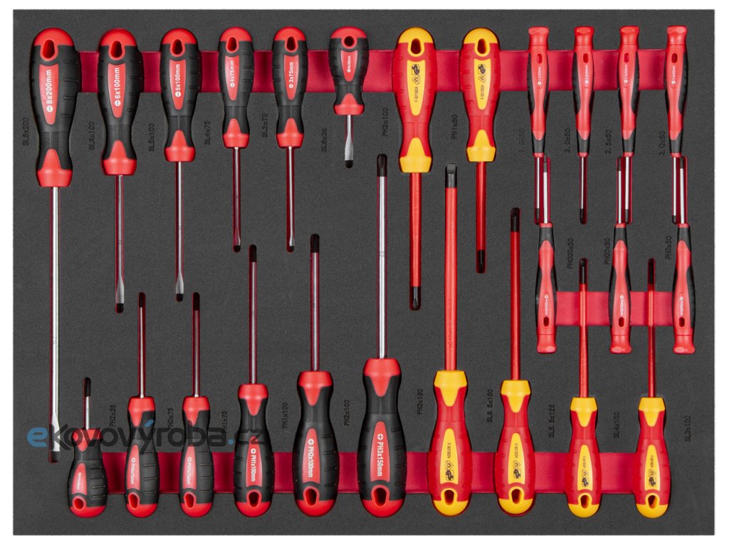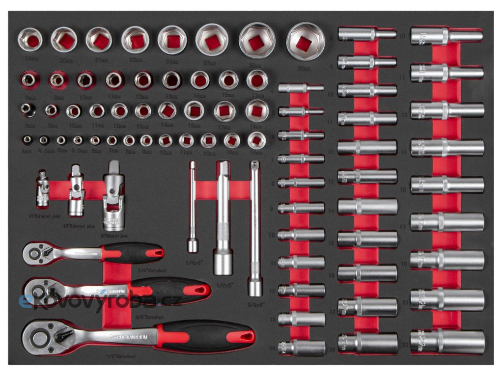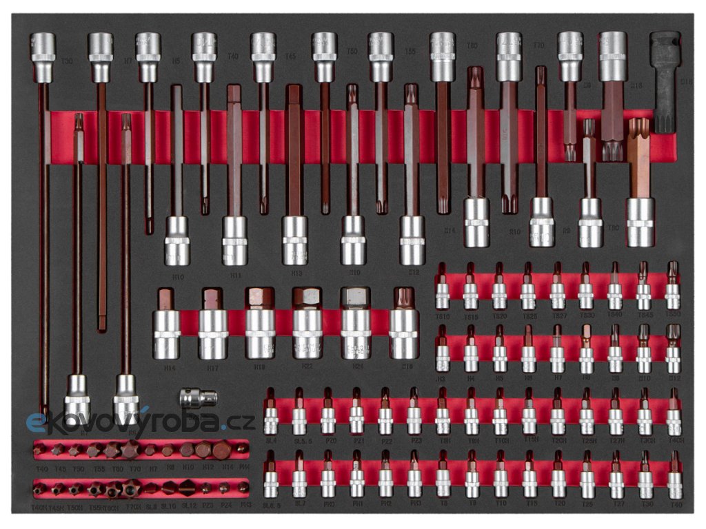 Výplně jsou navrženy tak, aby nářadí perfektně drželo na svém místě. To zajišťuje nejen přehlednost, ale také ochranu nástrojů během manipulace s vozíkem.
