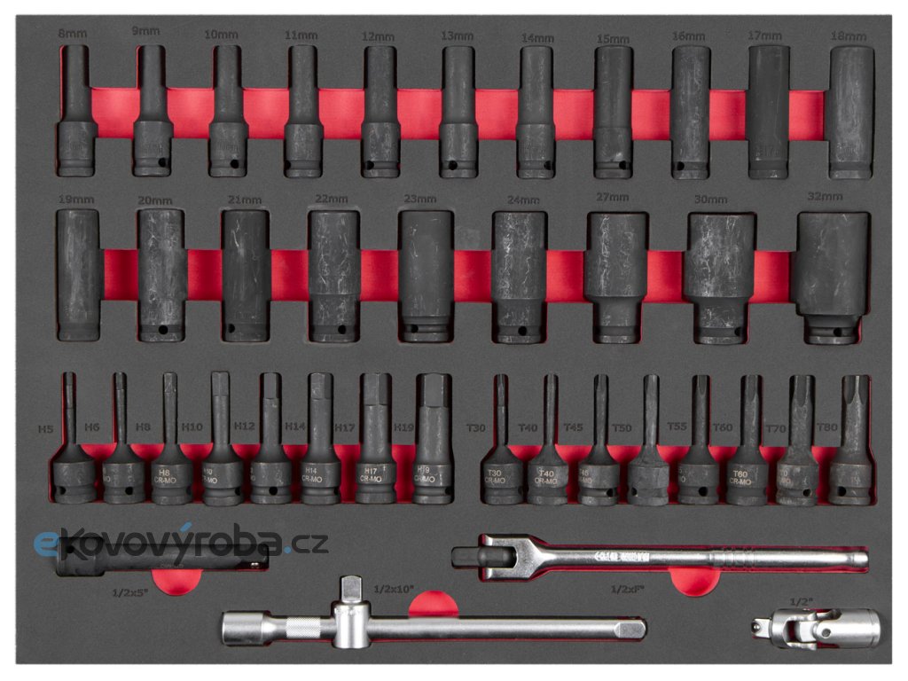 17 ks | Nástrčné klíče 6hranné: 8, 9, 10, 11, 12, 13, 14, 15, 17, 19, 20, 21, 22, 24, 27, 30, 32 mm |