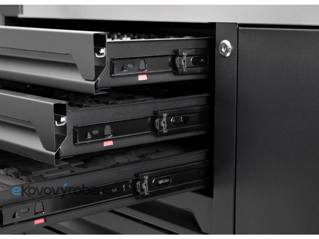 - Celková nosnost vozíku až 300 kg, každá zásuvka pojme až 30 kg.