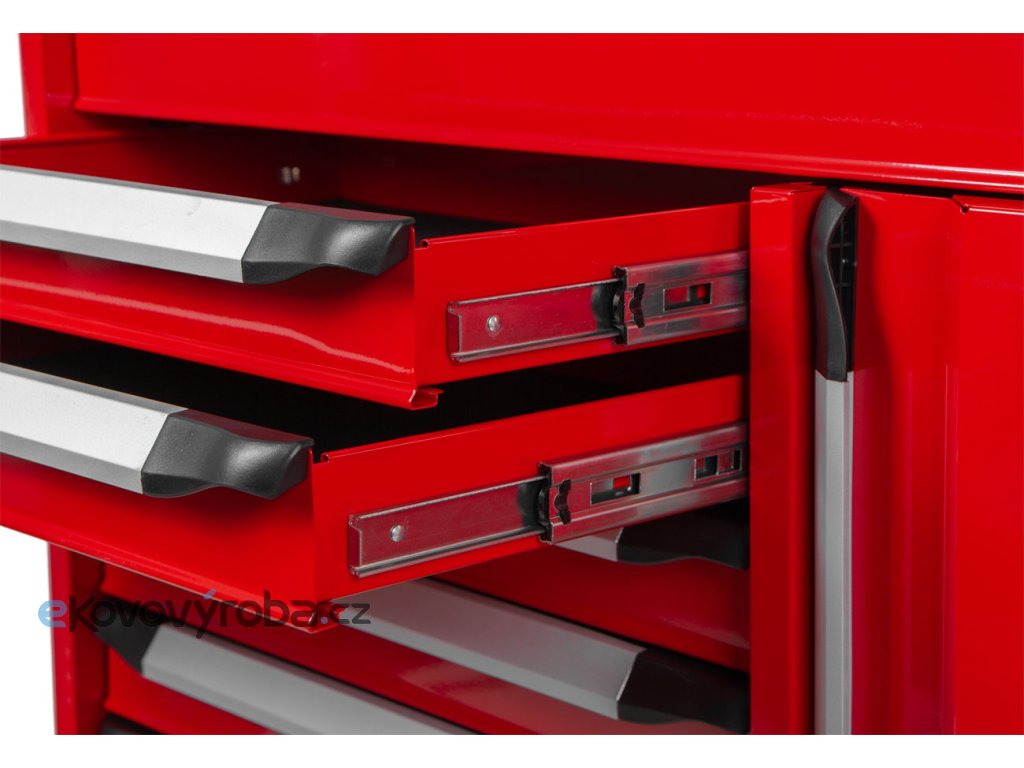 Vozík disponuje 7 zásuvkami různých velikostí, což umožňuje přehledné uspořádání nářadí: