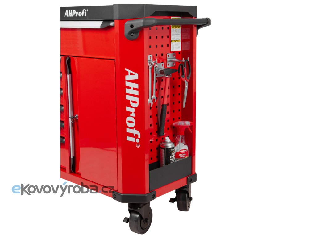 Na obou stranách vozíku se nacházejí perforované panely, které umožňují zavěšení dalšího nářadí pomocí různých druhů háčků. Děrovaná deska má rozteč děr 38x38 mm.