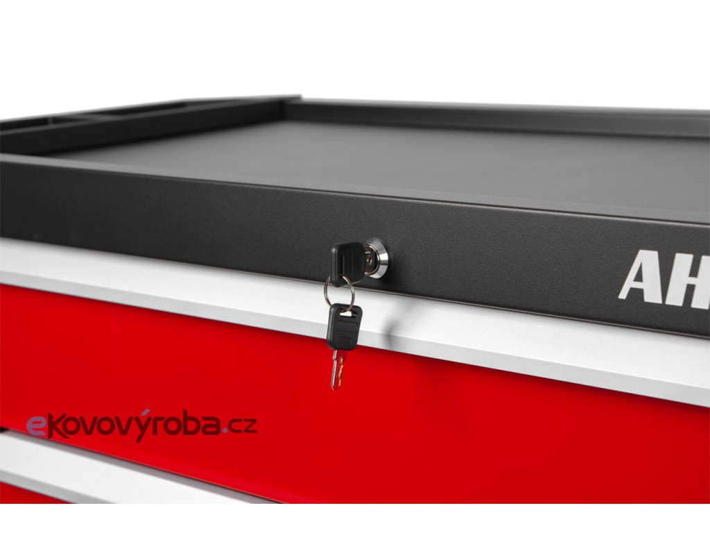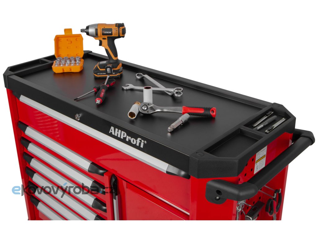 Samotný vozík je doplněn o velkou horní ocelovou desku, kterou lze využít při práci jako odkládací plochu.