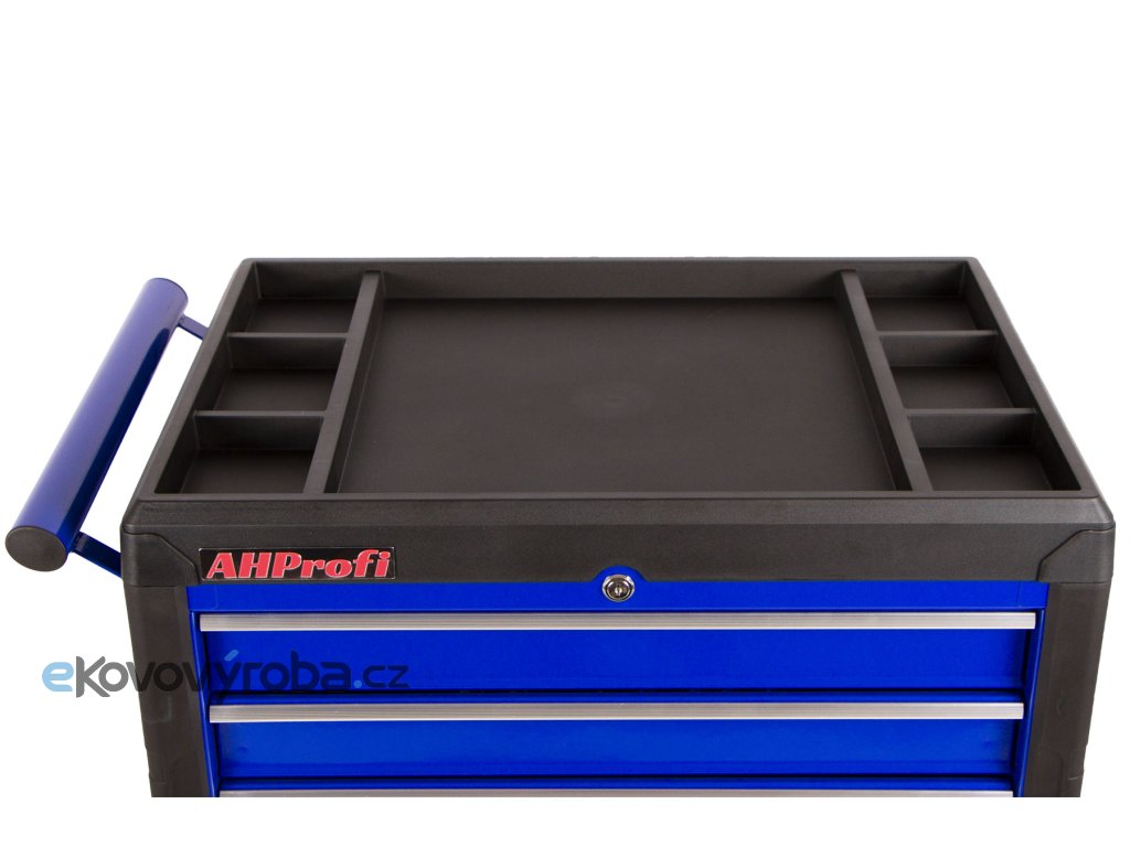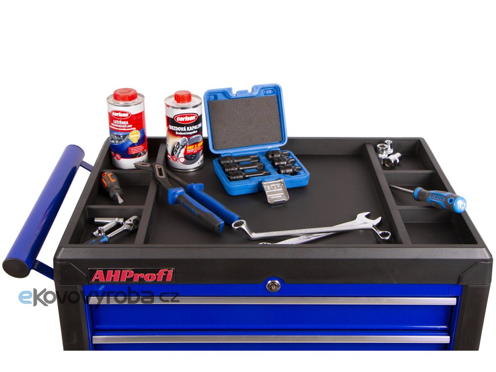 Pracovní plocha je z tvrzeného plastu s prolisy na odložení používaného nářadí apod.