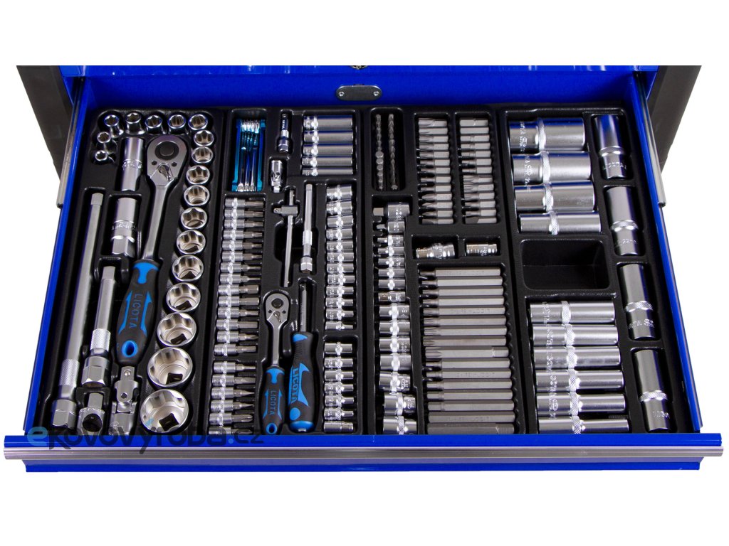 Pojízdný kovový dílenský vozík se 7 šuplíky vybavených 328 ks nářadí se bude hodit nejednomu profíkovi nebo kutilovi do jeho dílny.