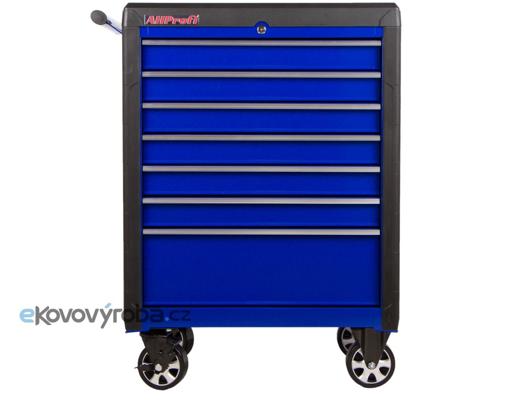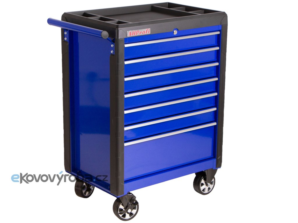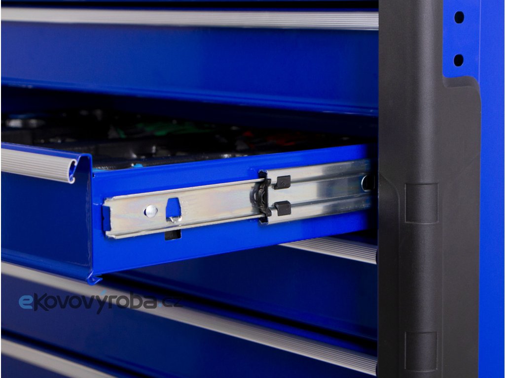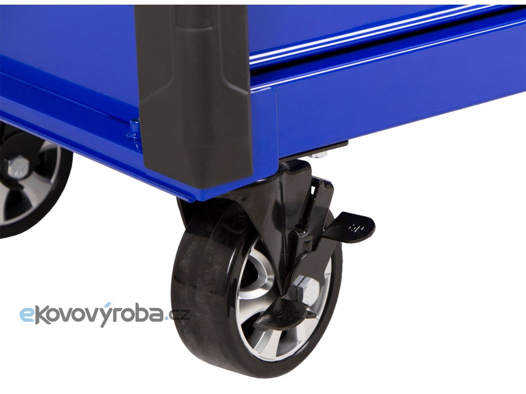 Dílenský vozík je celokovový se sedmi šuplíky.