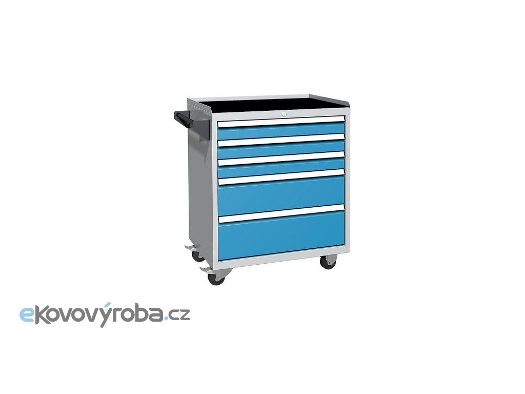 Vyrobeno z ocelového plechu. Horní odkládací plocha je vybavena rýhovanou gumovou rohoží. Vybaveno 2x otočným kolem s brzdou a 2x kolem pevným – průměr 80 mm. Vybaveno centrálním zámkem, doplněný o blokaci vysunutí více zásuvek najednou. Vybaveno cylindrickým zámkem se dvěma klíči. Povrchová úprava provedena nátěrem práškovou barvou.