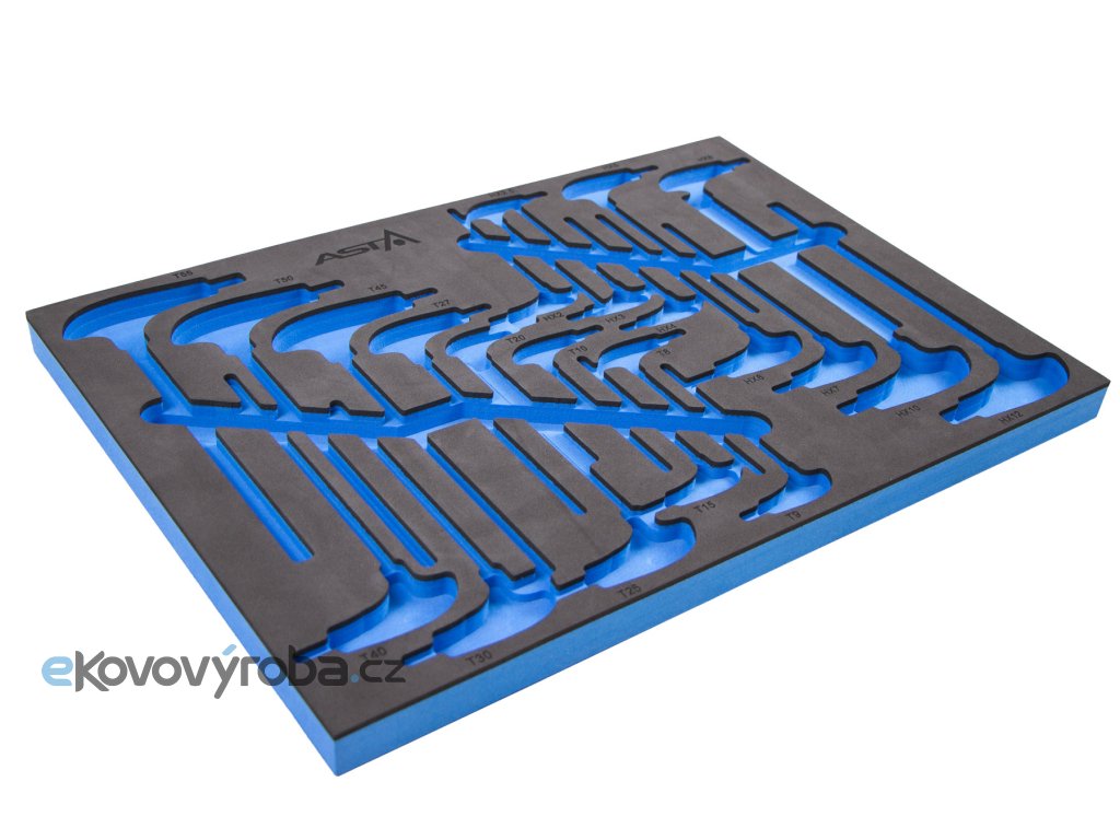 Prázdná pěnová vložka pro šroubováky typu "T". Vložka najde využití při organizaci vašeho nářadí v dílenských vozících nebo pracovních stolech.