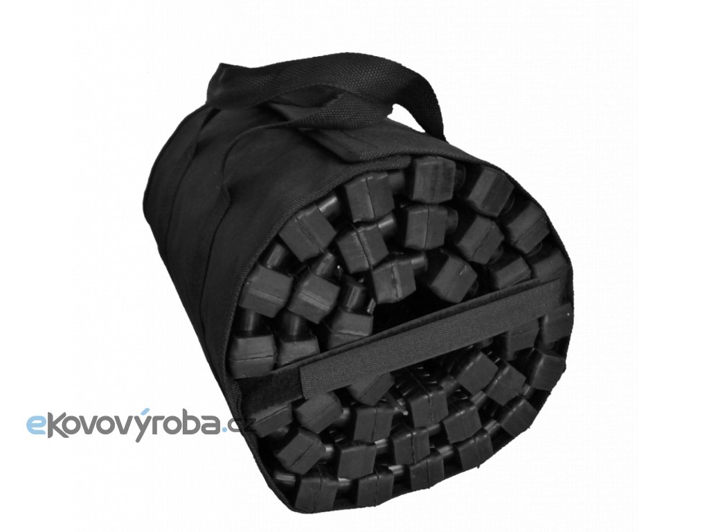 Kombinace pevných gumových hranolů spojených ocelovým lanem zajišťuje pevnost a dostatečnou trakci pro vyprošťované vozidlo.