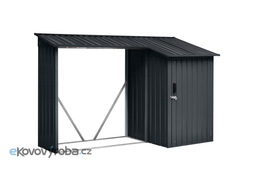 RMWS 3x9 Anthracite - přístřešek na dřevo s kůlnou 2,7 x 1,6 m s pultovou střechou antracit Materiál/barva: kov, antracit Rozměry (d/š/v): 105 x 270 x 158 cm Plocha přístřešku: 53 x 162 cm Plocha kůlny: 102 x 96 cm Skladovací objem: 1,3 + 1,4 m3 Dveře: jednodílné, křídlové Antikorozní ochrana: žárové pozinkování Barva: vypalovací prášková barva Tloušťka ocelových panelů: 0,25 mm Tloušťka ocelového rámu: 0,6 mm Ocelová základna přístřešku: ano praktický kovový přístřešek pro uskladnění dřeva spojený s praktickou kůlnou v kůlně se dá mimo dřeva skladovat i široká paleta nářadí, zahradní techniky a dalšího vybavení zahrady, které jsou mnohem lépe chráněny před povětrnostními vlivy pultová skloněná střecha a boční panely chrání dřevo před nepřízní počasí přístřešek je možno snadno sestavit svépomocí (doporučujeme 2 osoby), ideálně na pevný povrch (betonová deska, dlažba apod.) žárové zinkování rámu i profilovaných ocelových plechů spolu s kvalitní ochranou pomocí práškového nátěru jsou zárukou dlouhé životnosti a minimálních nároků na údržbu výztuhy pro zvýšenou odolnost konstrukce jednodílné dveře s madlem je možné bezpečně uzamknout moderní vzhled a elegantně působící barevná kombinace Případné bezpečnostní pokyny, výstrahy a upozornění jsou součástí návodu k obsluze, který je k dispozici v sekci KE STAŽENÍ.