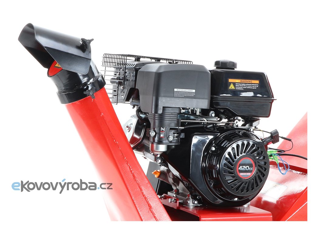 Výkonný motor: Motor Loncin s objemem 420 ccm a výkonem 14 HP umožňuje efektivní drcení i větších větví.