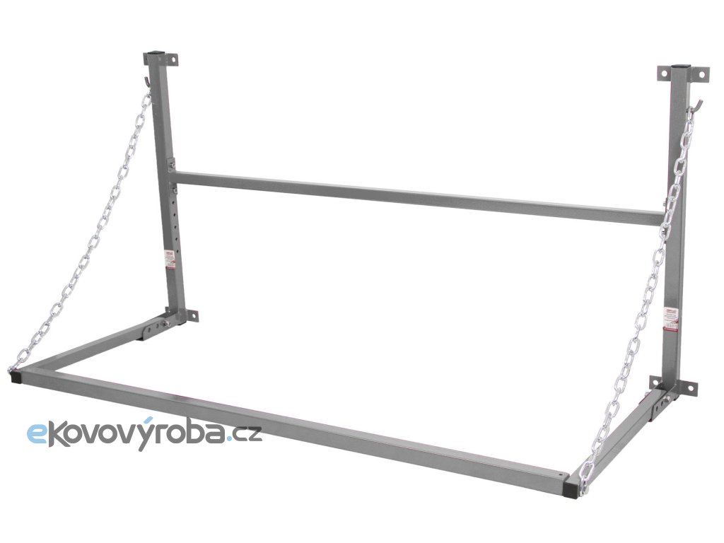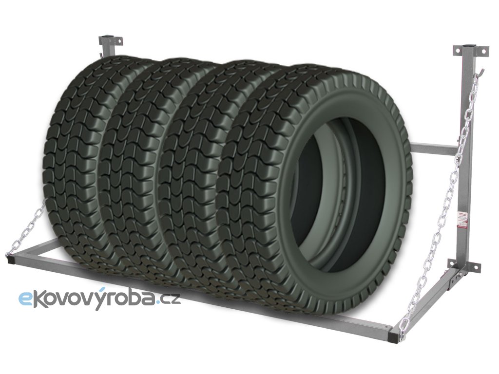 Celokovový závěsný držák pro bezpečné a pohodlné uskladnění pneumatik nebo kol.