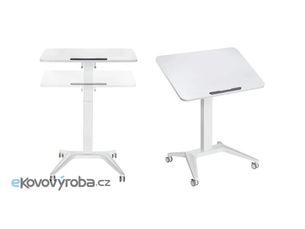 Univerzální stůl s pneumatickým nastavením výšky. Stůl je nejen praktický, ale také zabírá málo místa – dobré řešení pro větší volnost na pracovišti, v kanceláři nebo domácnosti. Náš stolek je vhodným řešením proti sedavému způsobu života, který zažíváme každý den doma i v práci. Změňte polohu výšky stolu na práci vestoje a v případě potřeby ji snadno a rychle snižte a pohodlně se znovu u stolku posaďte. Pocítíte obrovský rozdíl a zlepšení v efektivitě, pohodlí a rychlosti práce.
