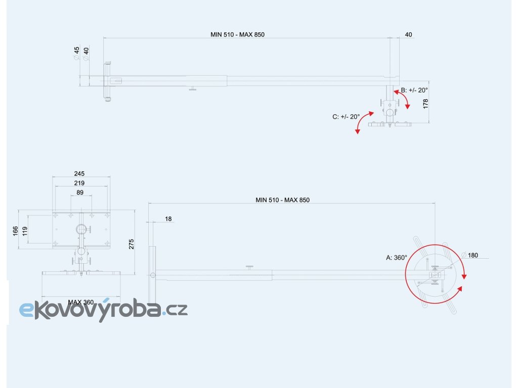 Kvalitní nástěnný držák na projektor, délková nastavitelnost, otočný, sklopný