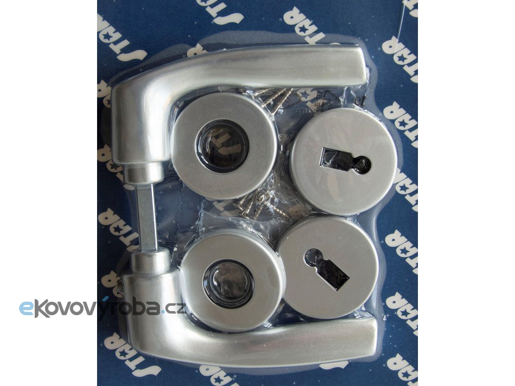 Kování v provedení rozeta v praktickém blistru s kompletním spojovacím materiálem k upevnění.