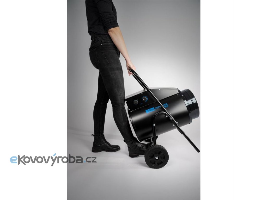 Prostorový termostat, udržující stálou teplotu automatickým zapínáním (vypínáním) topné spirály • bezpečný provoz topidla, zaručený pojistkou proti přehřátí • pohodlné převážení zásluhou velkých pojezdových kol.