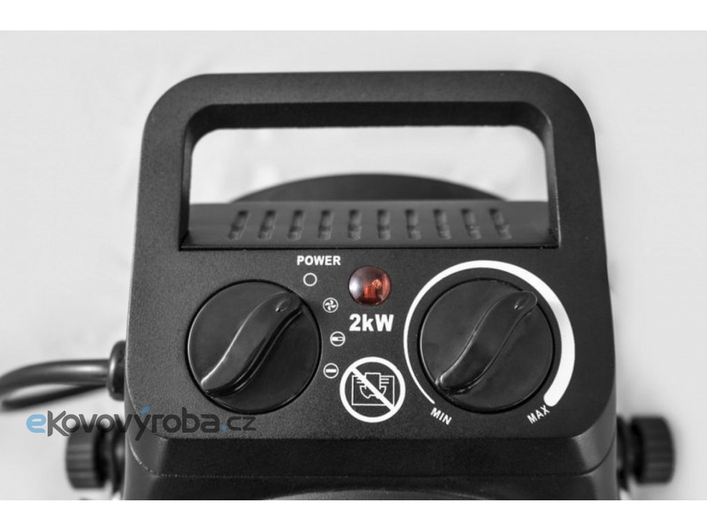 Max. tepelný výkon: 2 kW (→ 1.720 kcal/hod., 2 topné stupně: 1 kW/2 kW), ventilátor.