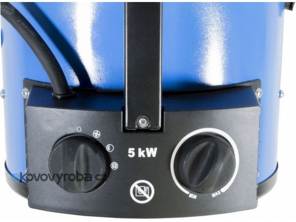Max. tepelný výkon: 5 kW (4.300 kcal/hod, 2 topné stupně: 2,5 kW/5 kW), ventilátor.
