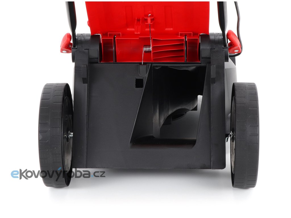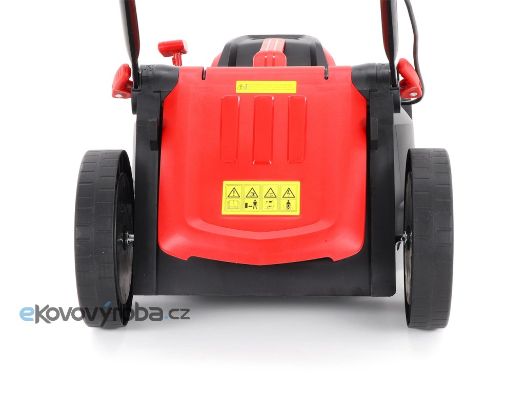 • převod otáček pomocí malého klínového řemene výrazně zvyšuje točivý moment stroje (více síly i v hustší trávě) a při nárazu nože na překážku zabrání spálení motoru a tím pádem i drahé opravě