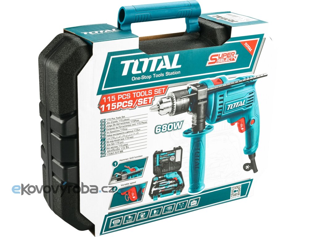 Vrtačka s příklepem a nářadím, 680W, 115ks