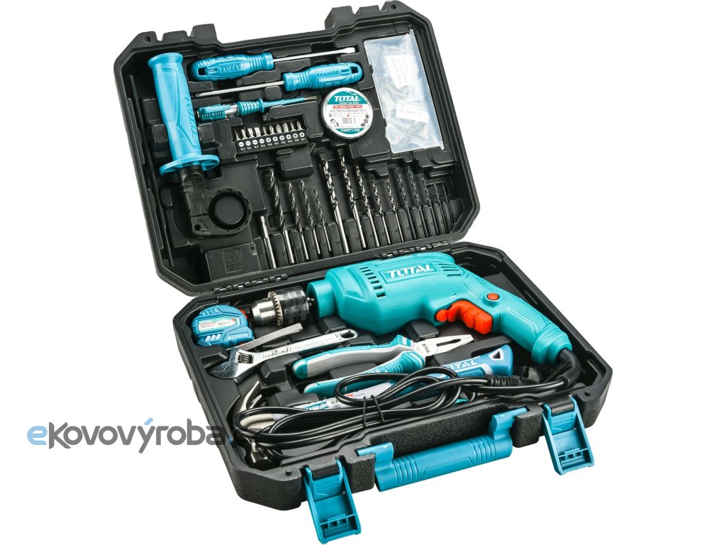 Tato sada nářadí obsahuje 680W vrtačku, s otáčkami 0-3000min a počtem rázů 0-48000/min. Maximální průměr vrtáku do betonu je 10mm, do oceli 13mm a do dřeva rovněž 13mm. Součástí sady nářadí jsou dva šroubováky, zkoušečka napětí, metr, kladivo, kleště, nastavitelný klíč, ulamovací nůž, sada vrtáků a hrotů, magnetický držák na hroty, šroubky a hmoždinky. Vše zabaleno v kurfu pro snadnou manipulaci.