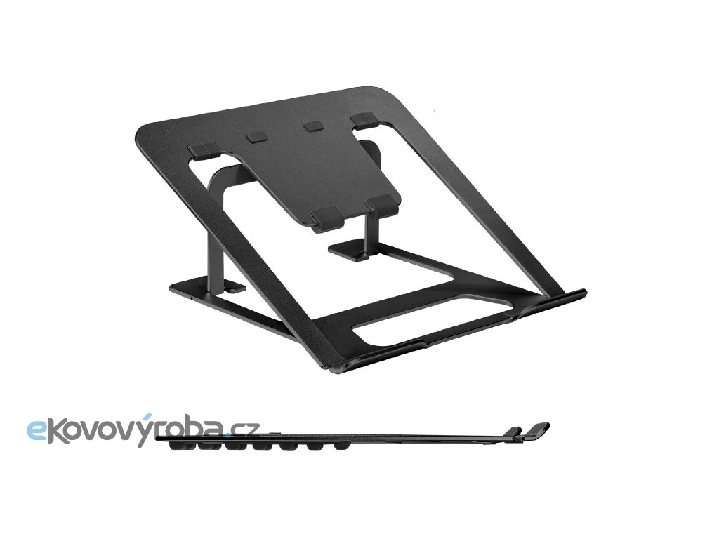 Přenosná hliníková podstava / stojan na notebook nebo laptop 11-15", polohovatelný, nosnost 5kg, barva černá