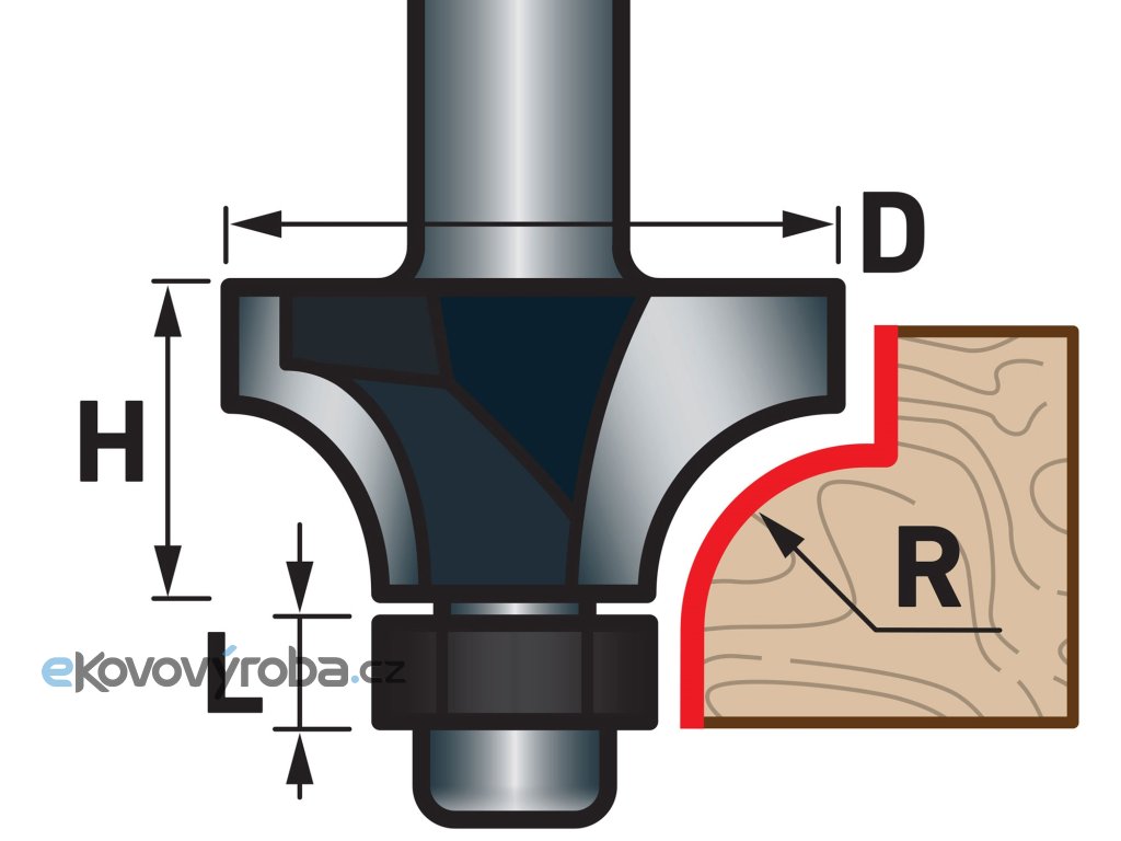 fréza zaoblovací (vydutá) do dřeva, R12,7 x D38,1 x H19