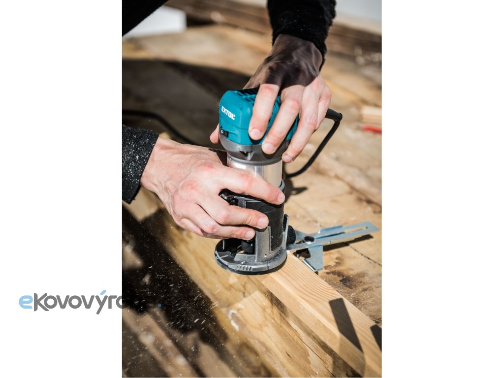 Frézka je určena k frézování hran, profilů, otvorů do dřeva s různými tvary v závislosti na tvaru použité frézy. Frézka může pracovat s frézami se stopkou 6 a 8mm. Srdcem frézky je silný 710W motor s regulací otáček v rozsahu 13000-33000/min, který umožňuje přizpůsobit rychlost typu materiálu. Dále je vybavena elektronickou kontrolou otáček, která jí umožňuje mít konstantní otáčky i při zatížení a funkcí "soft start" zajišťující hladký start bez nárazů. Pro přesnou práci je zanořovací základna vybavena hloubkovou zarážkou s možností přesného posunu v řádu desetin milimetru. Při práci s tvrdým dřevem můžete využít revolverovou zarážku pomocí, které si rozdělíte frézovanou hloubku do několika vrstev a postupně je budete odebírat. Balení obsahuje tři různé základny: zanořovací, jednoruční a základnu s rukojetí. Dále lze dokoupit předsazenou základnu vhodnou pro práce u stěn. Frézka lze snadno vyjmout ze základny a vložit do jiné základny v závislosti na prováděné práci. Tato modularita výrazně usnadňuje a zrychluje práci.
