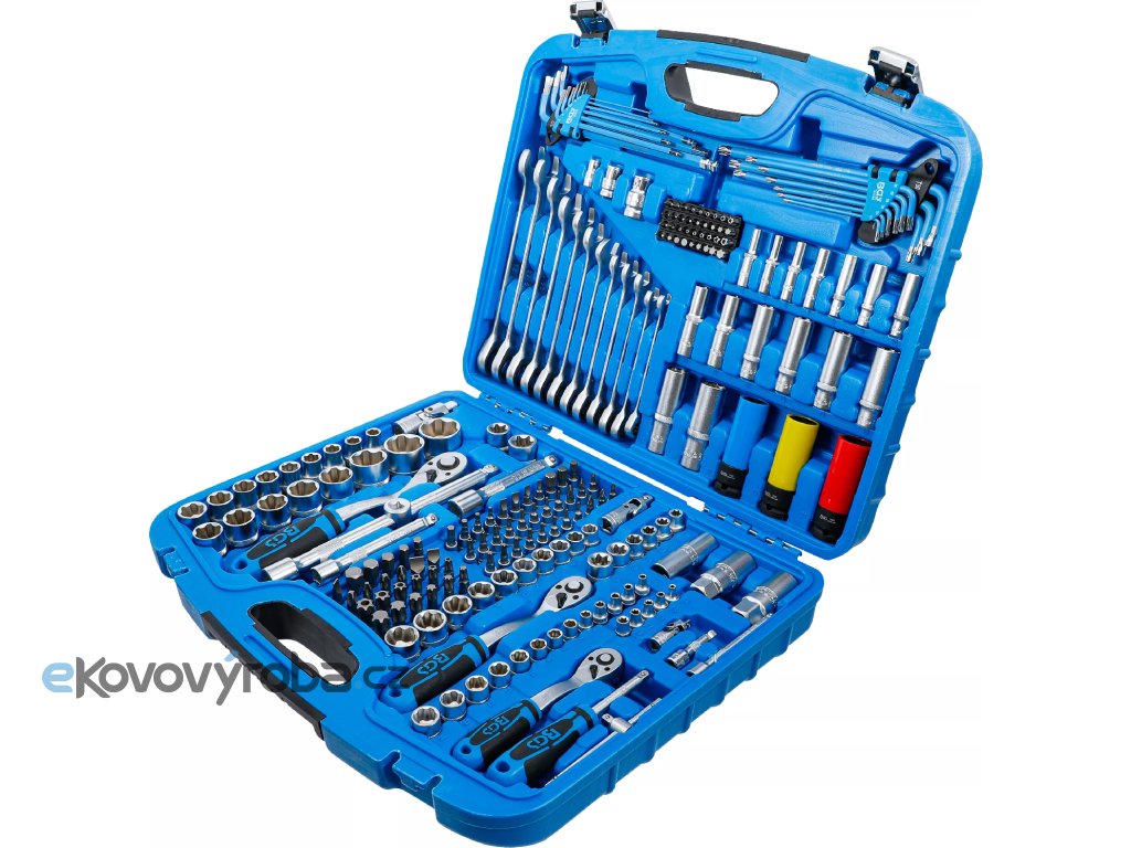 Kvalitní gola sada 1/2", 3/8", 1/4" obsahuje ráčny 72 zubů, nástrčné klíče s profilem Super Lock, bity, ráčnové klíče a další příslušenství pro práce v dílně, servisu i domácnosti.