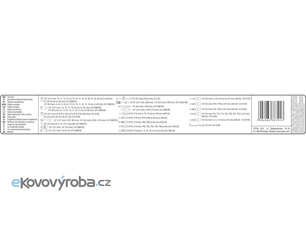 - 14x Nástavec 1/2": 10; 11; 12; 13; 14; 15; 16; 17; 18; 19; 20; 21; 22; 24 mm (38 mm)